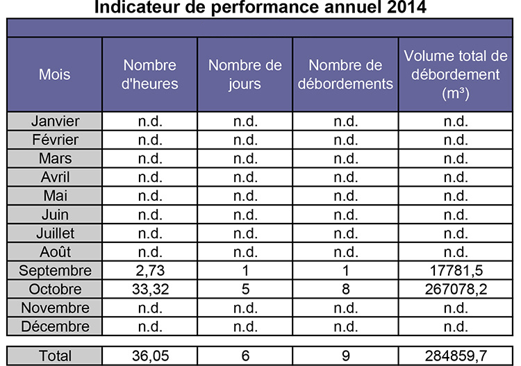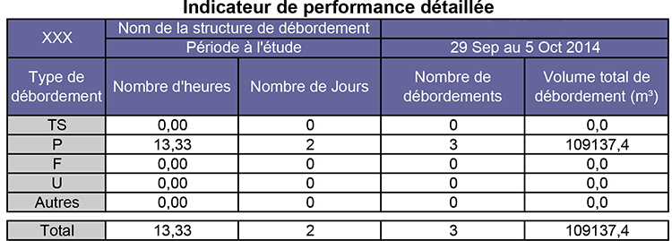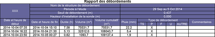 Un rapport des débordements pour la semaine du 29 septembre au 6 octobre est fourni à titre d’exemple.